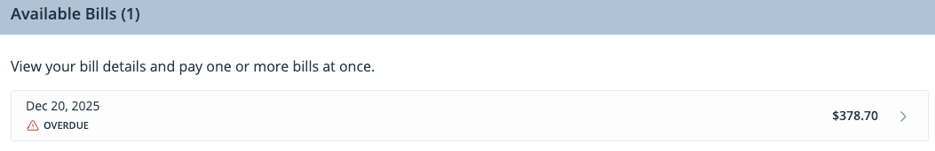 6. Available bills will appear. You may click on the arrow next to the amount to view additional bill information.